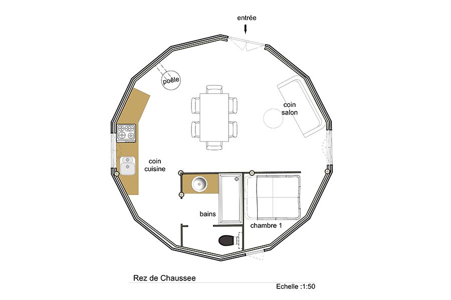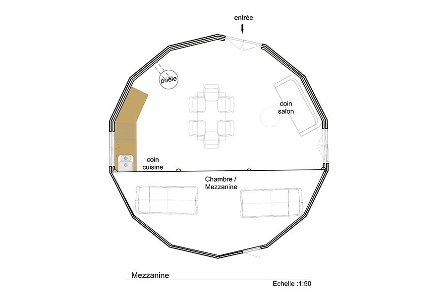 Les yourtes de 7 mètres sont idéales pour loger une personne seule ou un couple, avec ou sans enfant. Vous pouvez implanter une mezzanine afin d’optimiser l’espace et créer des pièces fermées.
