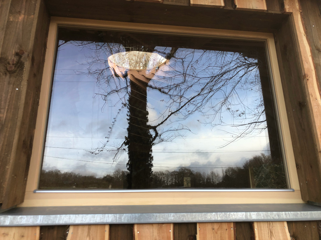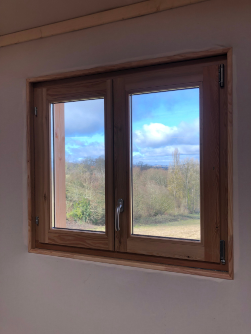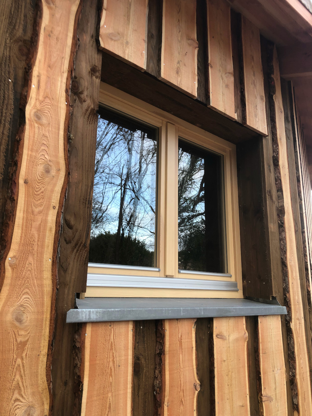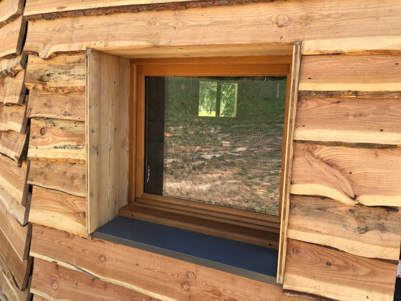 Yourte d’habitation en région parisienne, avec murs ossature bois offrant une rigidité et une durabilité accrues. Hauteur des murs 2m80. Grande baie vitrée. Bardage bois en mélèze. Plancher frêne olivier. Charpente renforcée. Fenêtres bois, cadre 68 mm, tablette zinc, finitions soignées, durabilité au top !